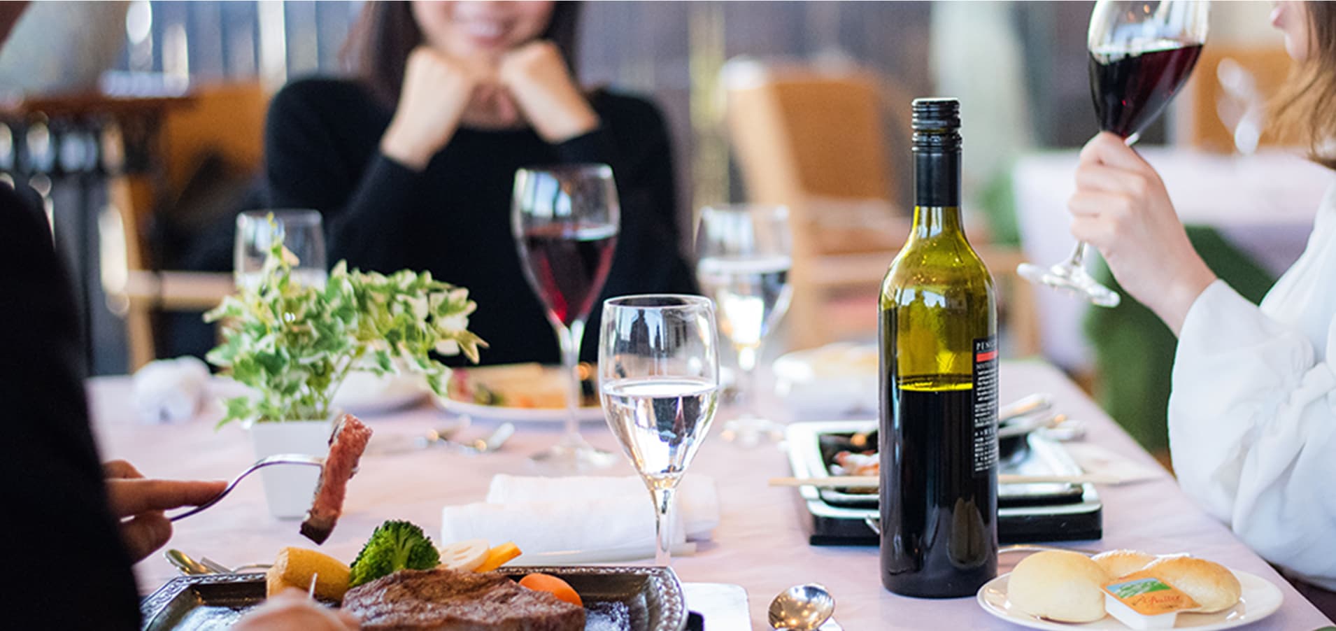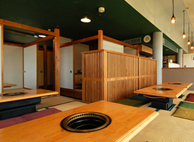 1階椅子テーブル席でステーキを、2階小上がりの畳席で焼肉、すき焼き、しゃぶしゃぶをお召し上がり頂けます。